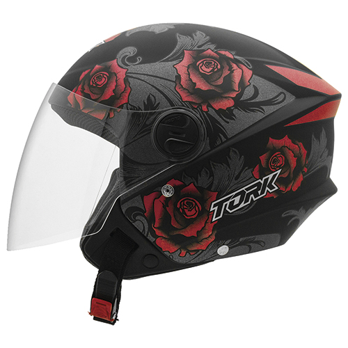 CAPACETE NEW LIBERTY THREE FLOWERS VERMELHO/PRETO FOSCO N°56<>